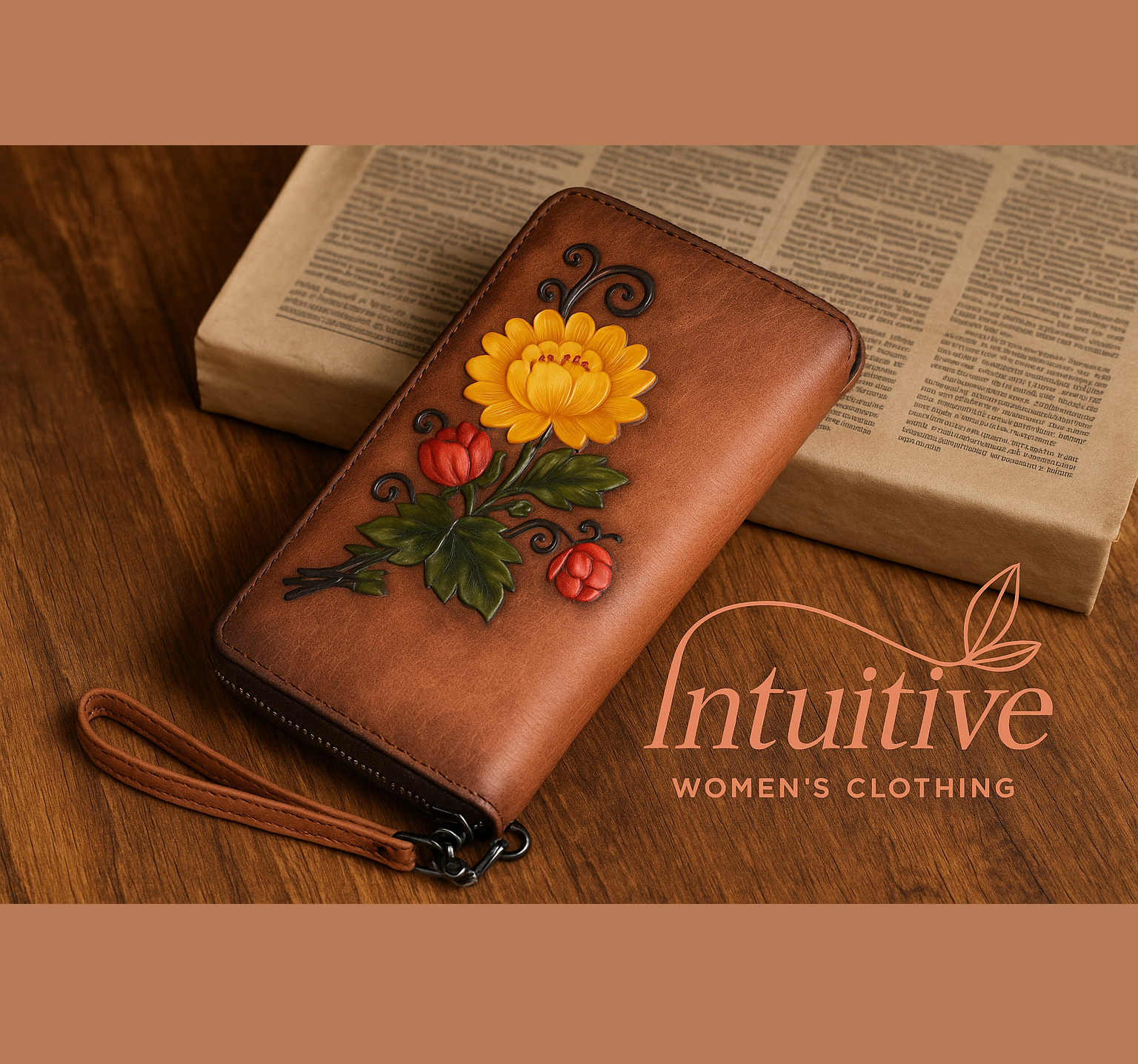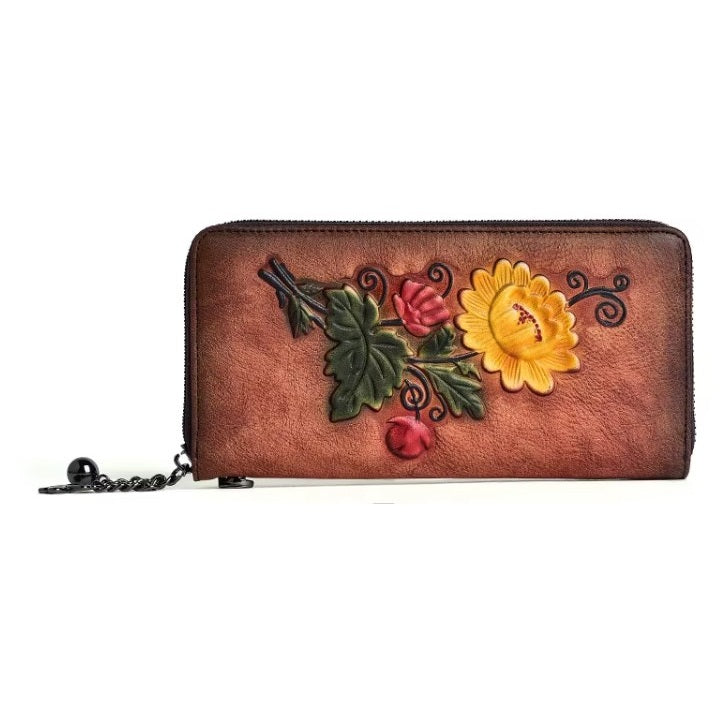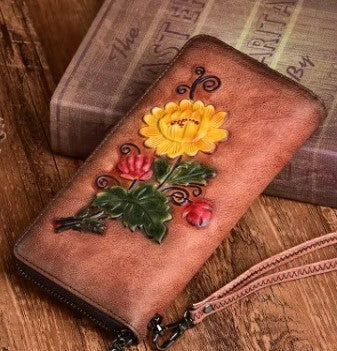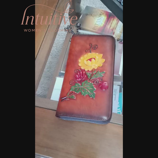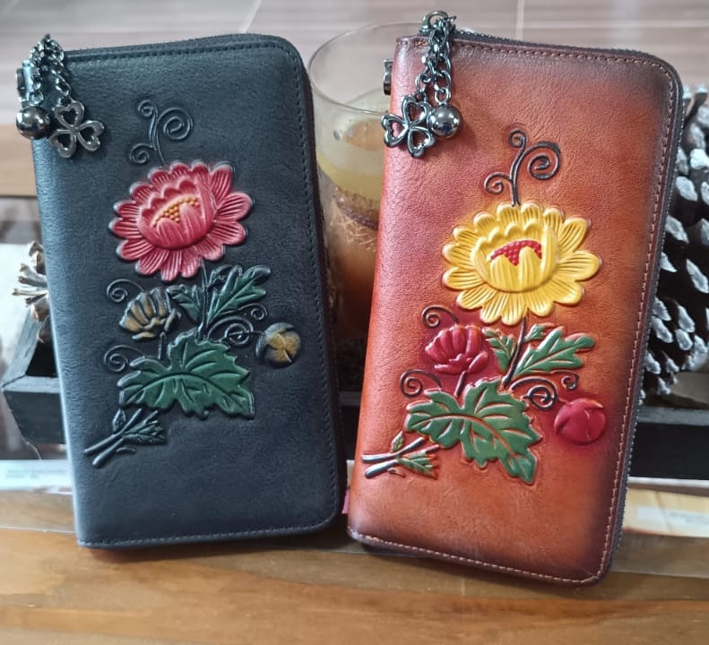 Billetera cuero Genuino diseño floreado grande vintage