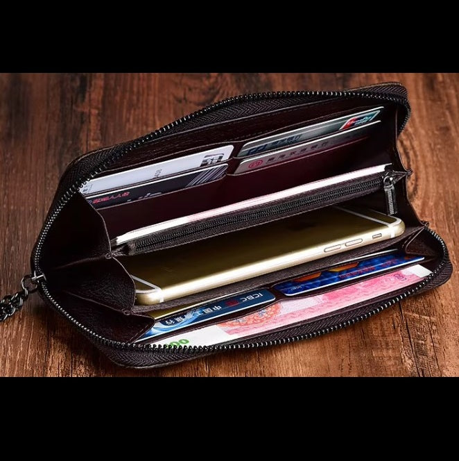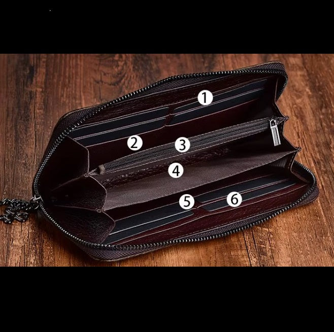 - Organización inteligente : Interior espacioso con 6 compartimentos numerados para tarjetas, billetes, monedas y documentos.